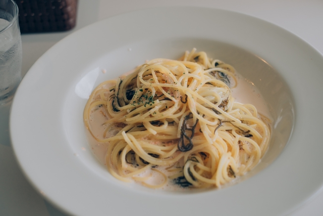 濃厚な海の幸を使ったパスタです。メインの魚介類と玉ねぎなどを加え、ソースはクリームやバターなどを使用します。